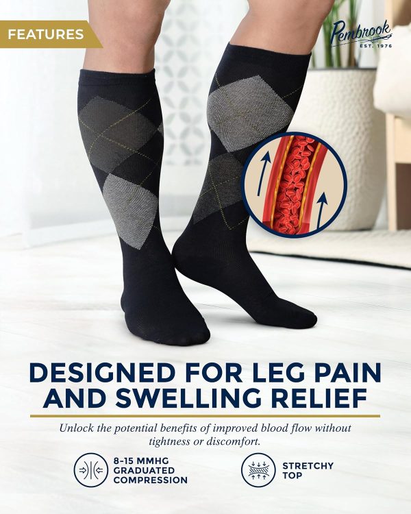The gentle compression provided by these socks promotes better circulation, reduces swelling, and relieves fatigue, making them perfect for individuals who spend long hours on their feet. Say goodbye to discomfort and hello to all-day support with the Pembrook Light Compression Socks for Men.