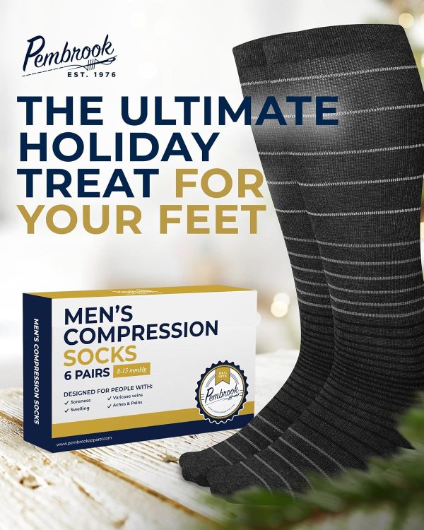 Pembrook Light Compression Socks for Men – 6 Pairs | 8-15 mmHg Graduated Compression Socks for Men 9-12 | Support Socks