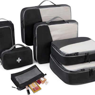 BAGAIL Transparent Compression Packing Cubes, Clear and Visible Travel Packing Organizer for backpack and suitcase